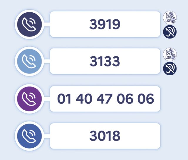 Gratuit, anonyme et accessible 24h/24 et 7j/7.Le 3919 est également accessible aux femmes sourdes et malentendantes via le service ACCEO.