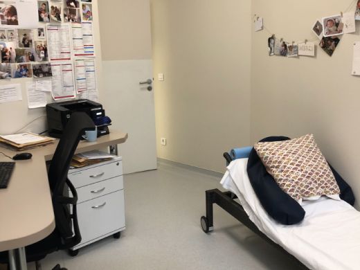 Salle de consultation sans bureau entre le soignant et le patient.