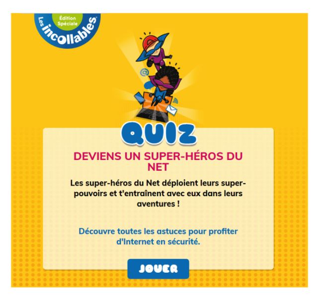 Deviens un super-héros du Net est un quiz interactif pour apprendre à naviguer sur Internet en toute sécurité.